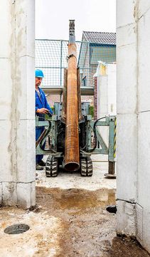 Mit unseren Maschinen und Geräten sind wir in der Lage – auch durch kleine Kellertüren – den geplanten Standort zu erreichen, um die notwendigen Pfähle herzustellen. Das gilt sowohl für Pfähle im als auch am Bestand. Sprechen Sie uns an, damit wir einen Ortstermin vereinbaren.